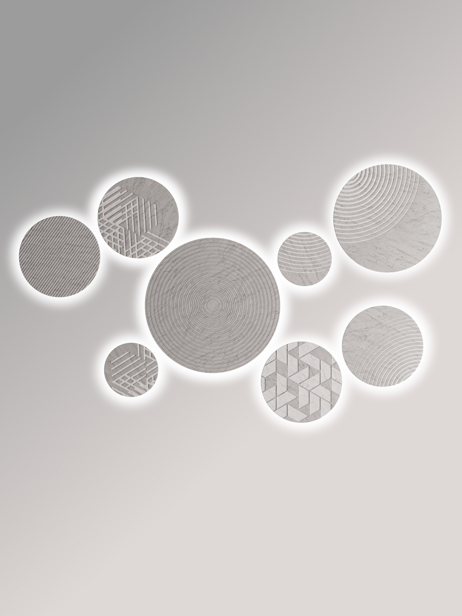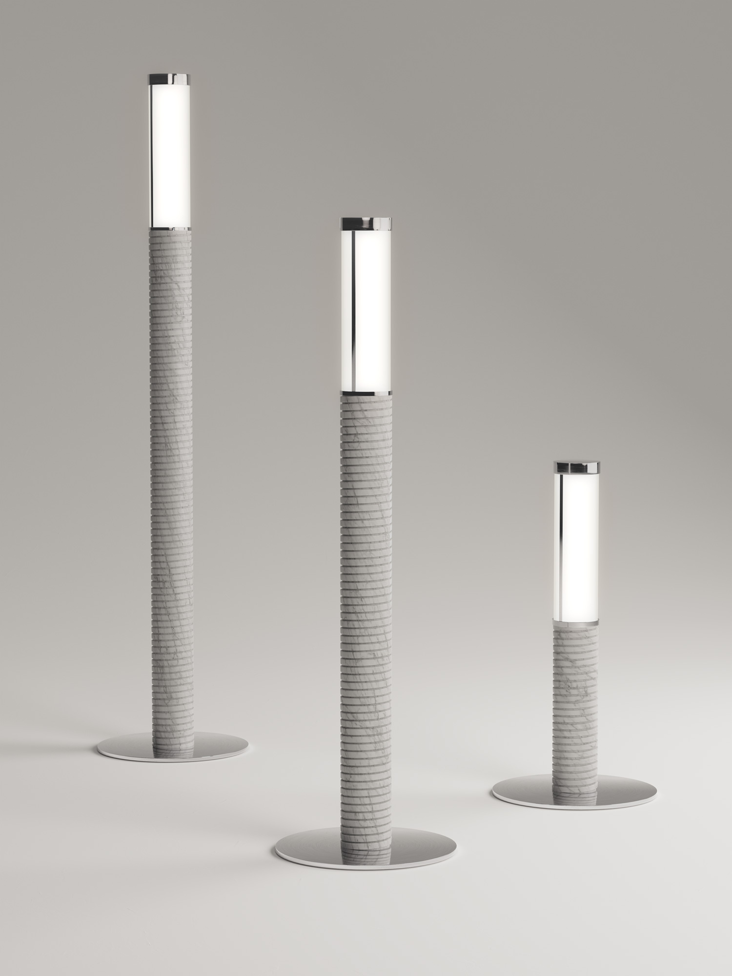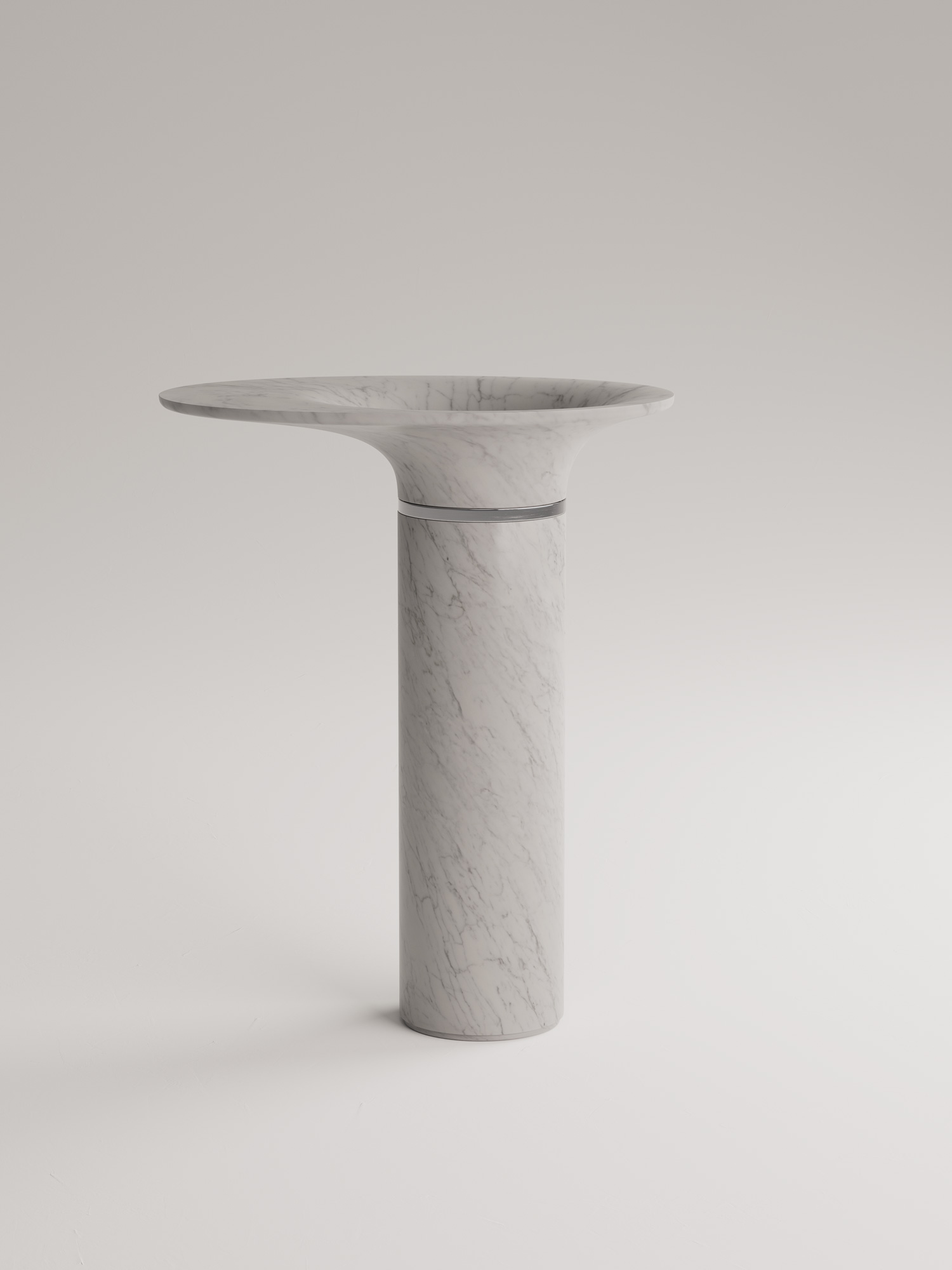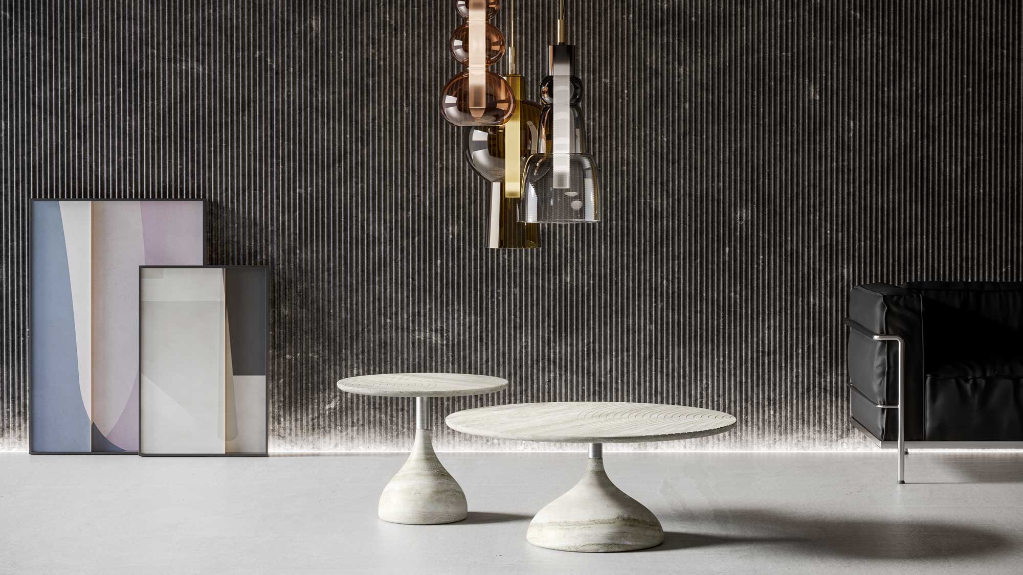 I tavolini STARDUST nascondono la loro forte anima marmorea dietro linee sinuose e leggere e forme morbide e aggraziate. Un elemento metallico arricchisce la base in marmo lavorata al tornio e sostiene il piano circolare, lavorato a macchina e texturizzato con motivi geometrici.
